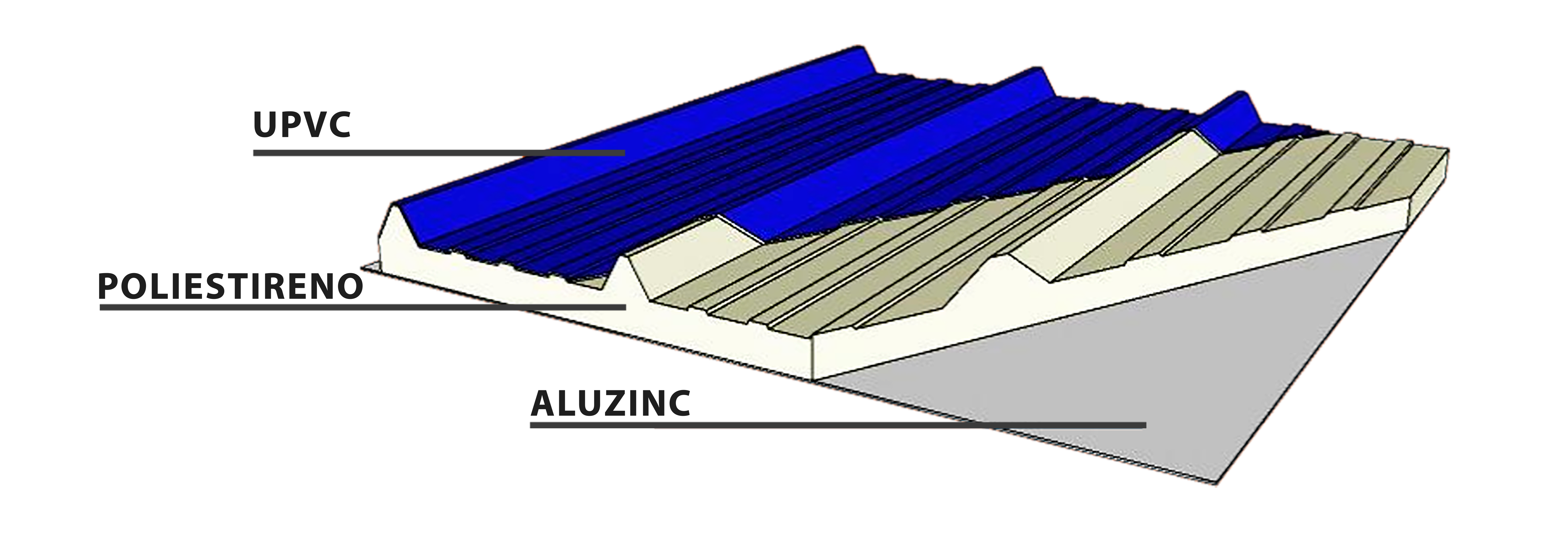 Material exterior: Cara superior de UPVC e inferior de Aluzinc.
